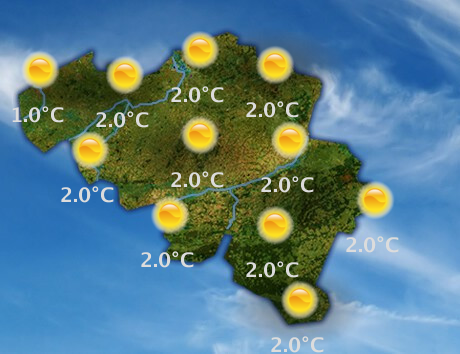 Lundi, le ciel sera partagé entre soleil et nuages de haute et moyenne altitude. Il fera encore assez doux avec des maxima de 6 ou 7 degrés dans le nord du pays et 9 ou 10 degrés dans les régions proches de la frontière française. Le vent sera faible à modéré, d'abord de secteur est à sud-est, revenant ensuite graduellement au secteur est à nord-est.