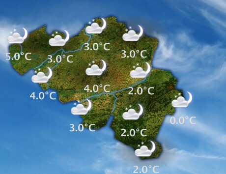 Ce soir, le ciel sera peu nuageux en beaucoup d'endroits. Toutefois, sur l'ouest et le sud-ouest du pays, les champs nuageux seront parfois encore nombreux. Durant la nuit, nous prévoyons de larges ouvertures avec des nuages de haute et moyenne altitude. Les minima se situeront entre 0 degré en Hautes-Fagnes et 5 degrés sur l'ouest du territoire, sous un vent faible à modéré de secteur est à sud-est.