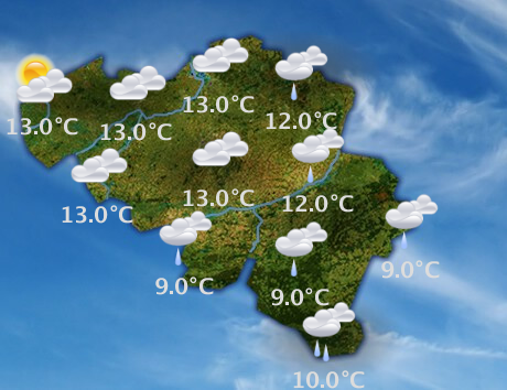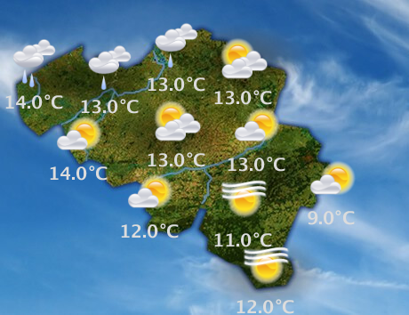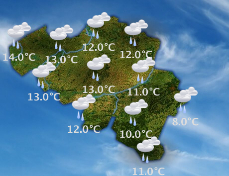 Aujourd'hui, la nébulosité sera abondante avec quelques pluies éparses ce matin. Cet après-midi, une zone de pluie plus organisée envahira notre pays à partir de la France. Les maxima varieront entre 8 degrés en haute Ardenne et 13 degrés en bord de mer. Le vent sera généralement modéré de sud à sud-ouest. Le vent se renforcera graduellement en soirée.